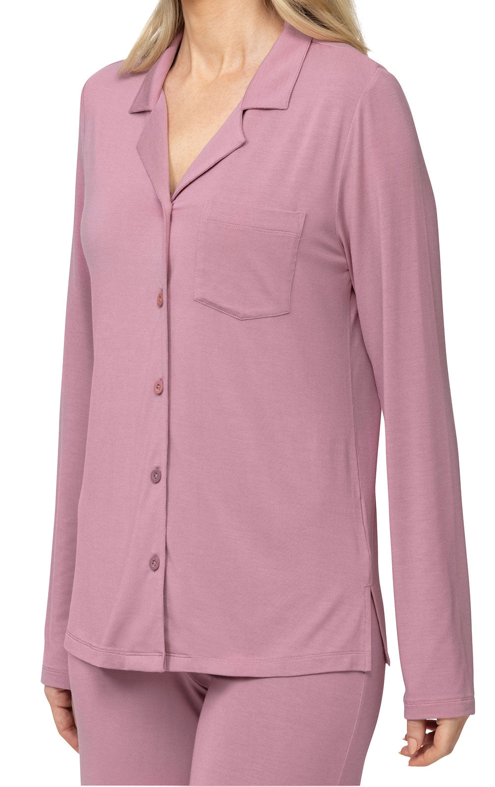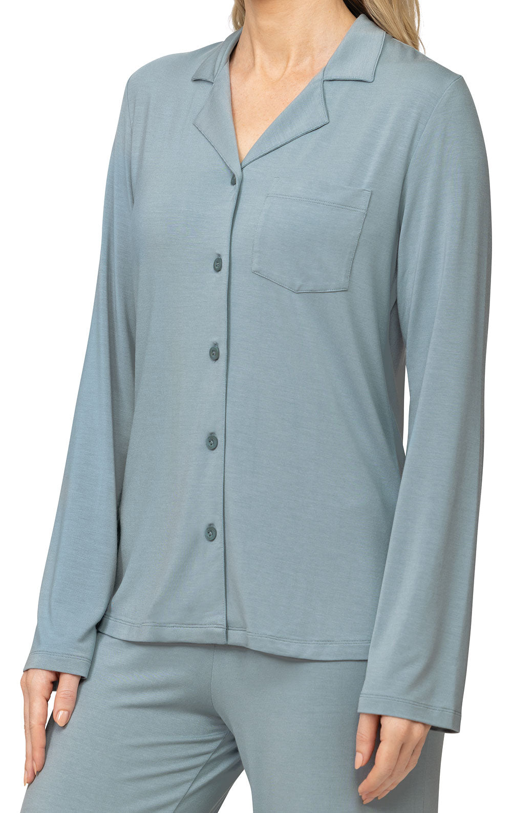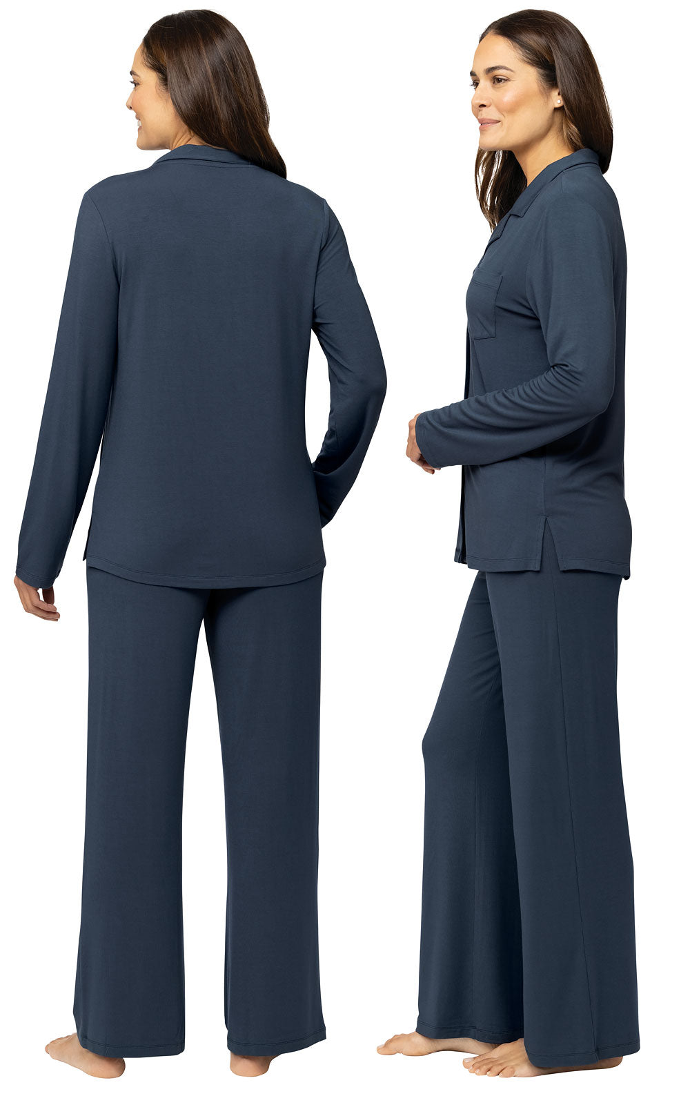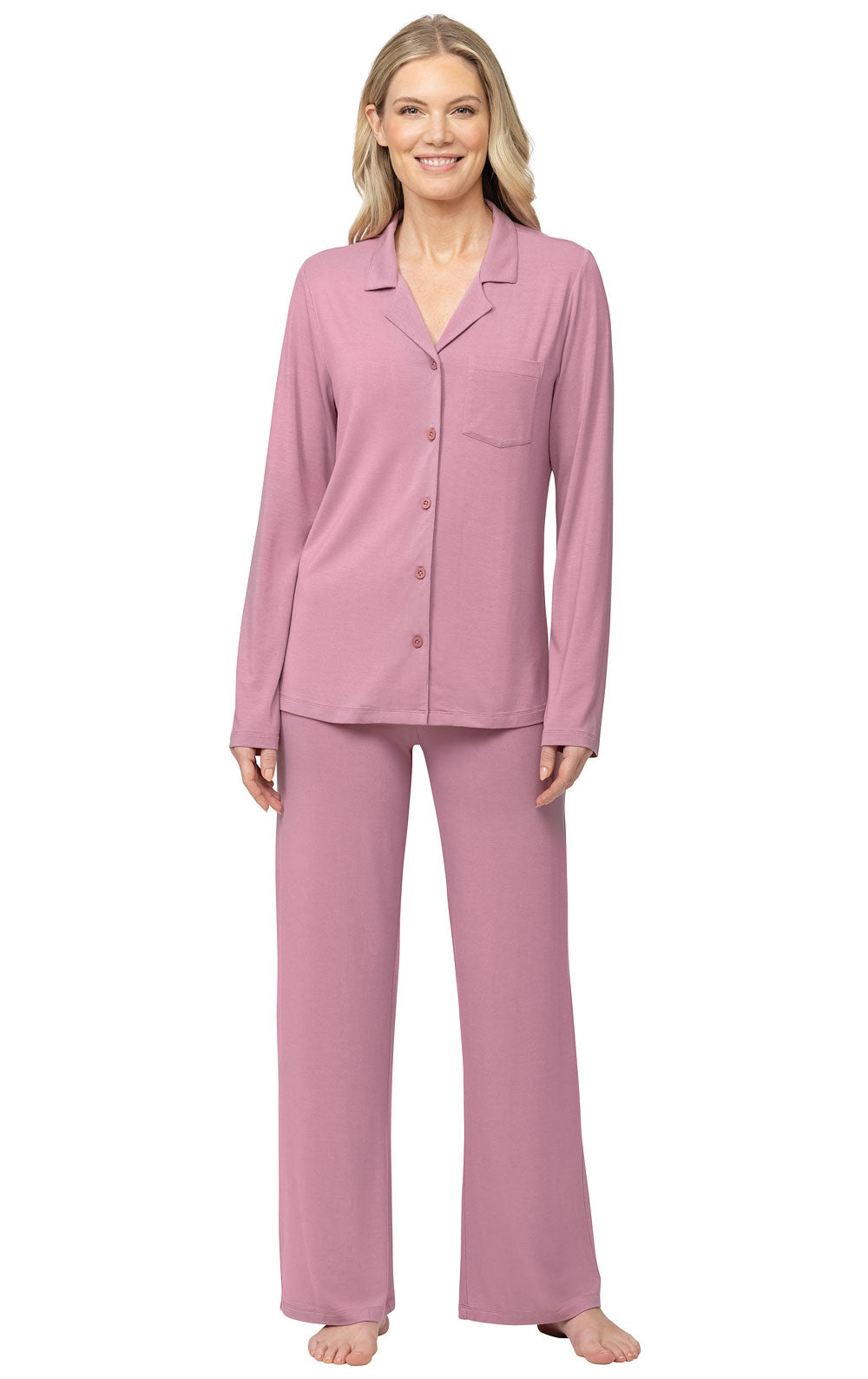 Made of a fabric that is manufactured using eco-responsible production practices for a cleaner. more sustainable environment as well as boasting fibers that are biodegradable. the Consciously Cozy Button-Front Pajamas are sleepwear to feel great about and in. A surprisingly super soft set. the Tencel material is also known for its excellent drape. breathability. and anti-wrinkle properties. Boasting just the right amount of stretch with a timeless yet modern design. these pajamas include a slightly fitted. long-sleeve. notched collar top with a breast pocket as well as relaxed fit pants with an elastic waist and drawstring. To wear these pajamas is to love these pajamas and that is it.