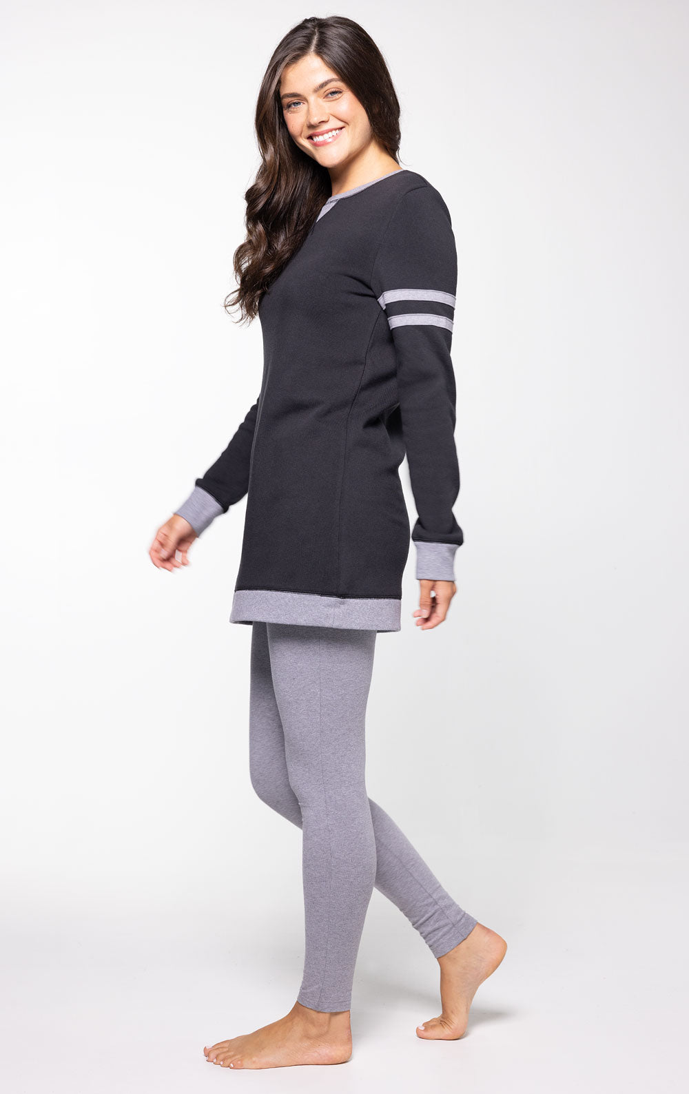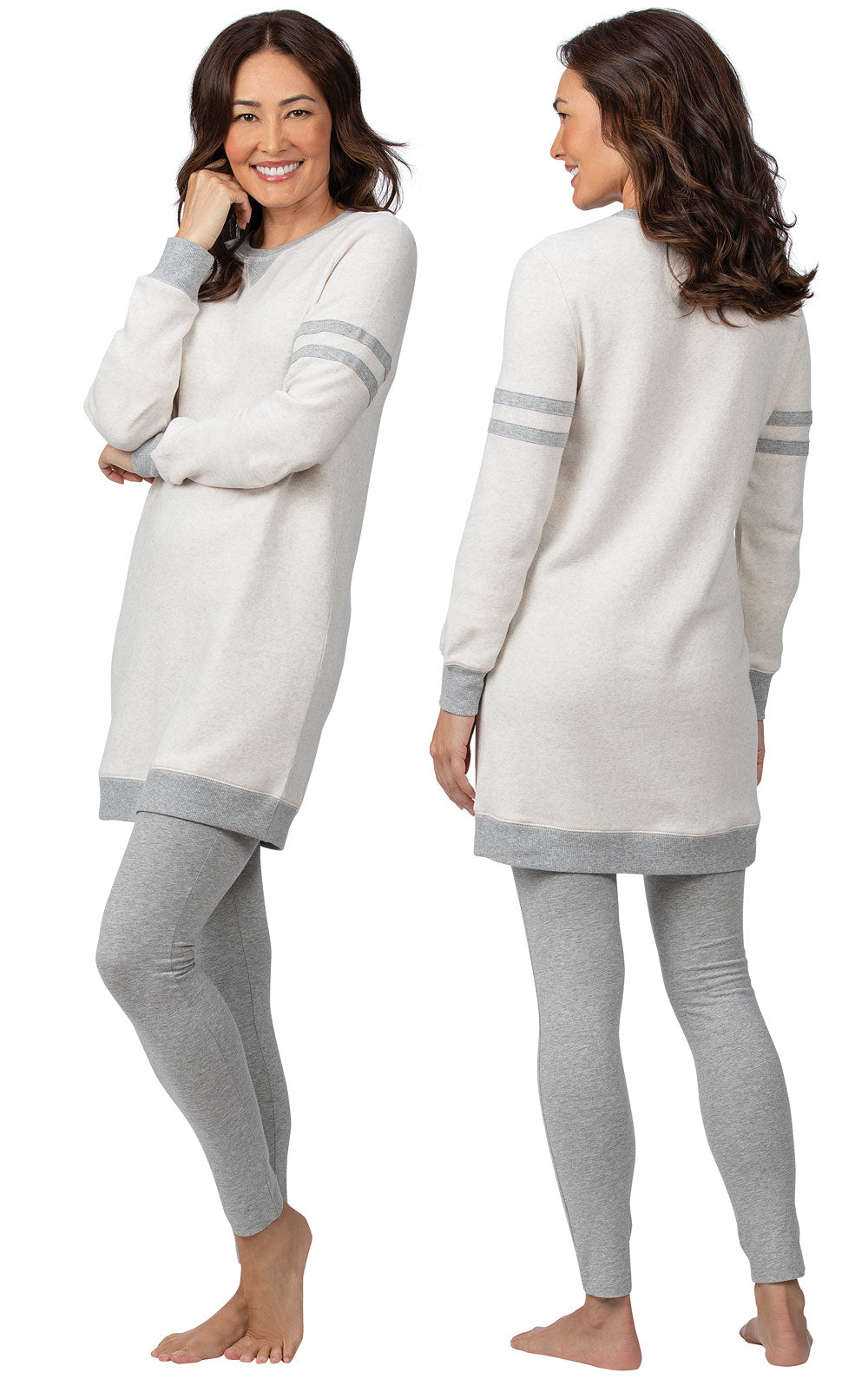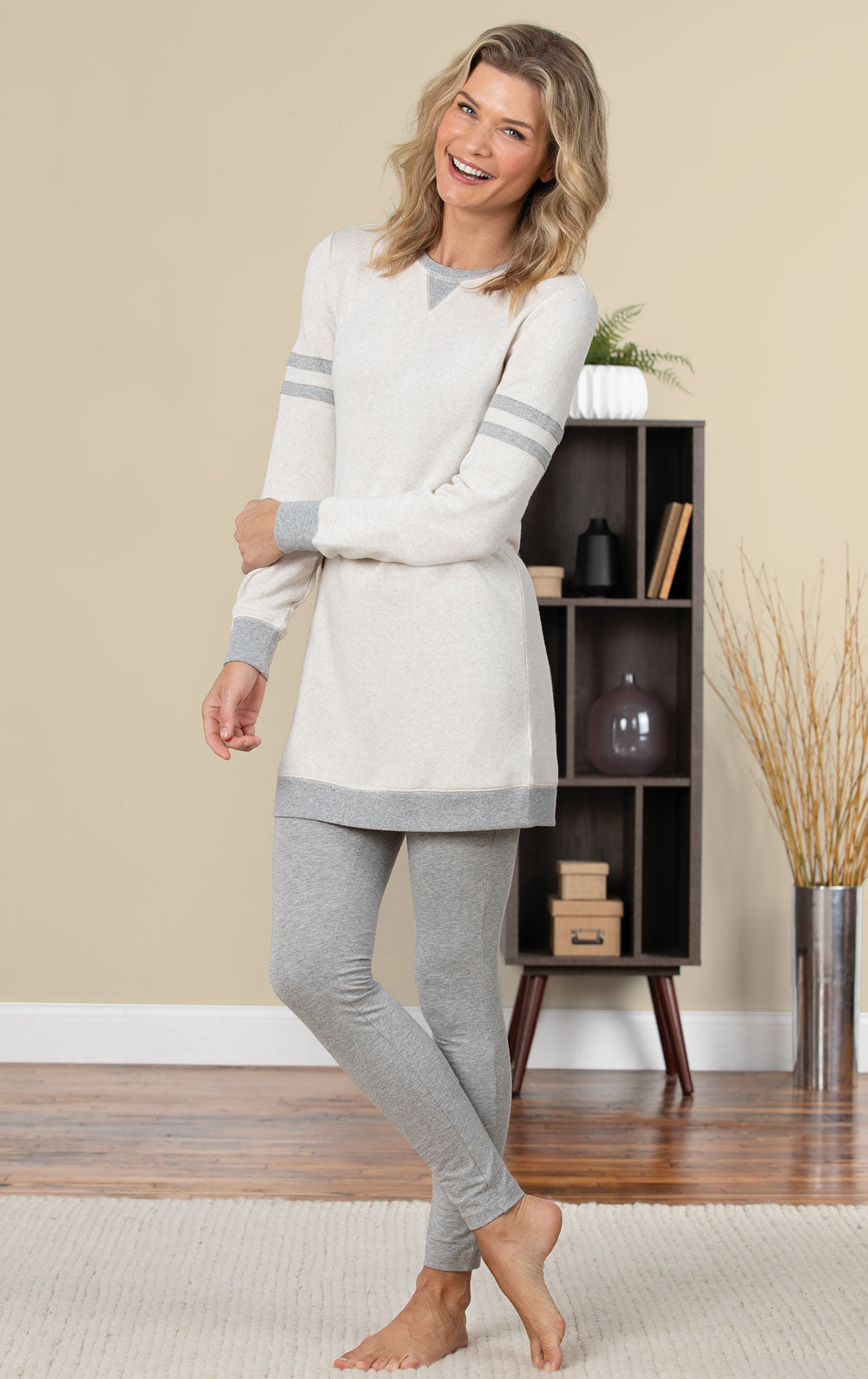 The Sporty Sweatshirt Set is an exquisitely soft lounge duo that brings athletic charm to downtime. With classic features like a crew neckline. long sleeves. a tunic length. rib-knit trim. and elastic waistband. it is made of a double-brushed fabric for pure relaxation. Pull it on any day or night and enjoy effortless style.